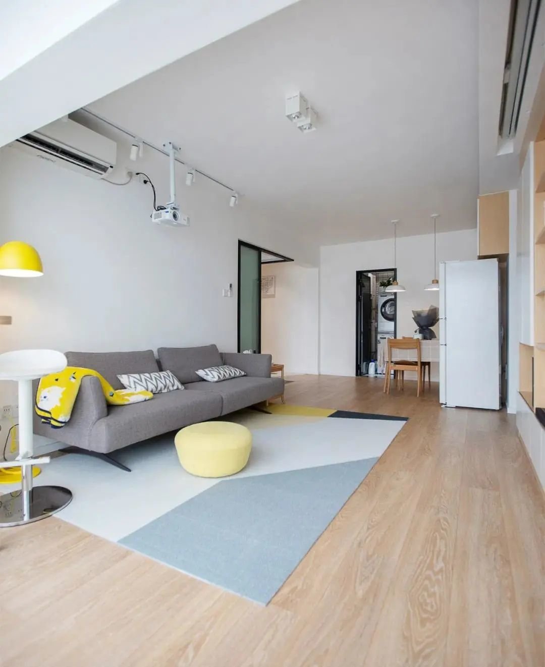 今天齐家安安要分享的是一套78㎡原木风小户型装修案例,整体以白色+原木色为主,加入雾霾蓝、灰色、亮黄点缀,打造温馨实用的日式MUJI风。