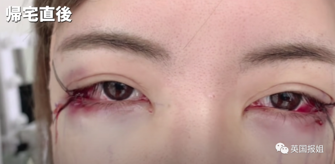比如姐姐做了“下垂眼”手术,当天眼角被吊着两根线回家,伤口还在往下滴血。