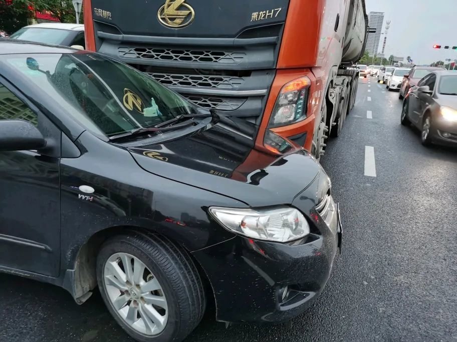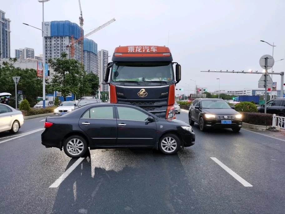 据货车驾驶人陈某交代,当时两辆车都在红绿灯路口等待绿灯亮了直行,当时车辆往右偏移了一下就碰撞到了旁边的小车,才导致小轿车失去控制,等自己发现并停车的时候已经推行了近100米了。