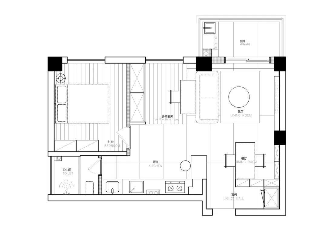 这是一套50平米的老破小户型,房子面积不大,改造以简约风格为基调,布置上现代舒适的家具,以简约自然的开放式客餐厨空间设计,为主人布置了一个从容惬意的生活环境。