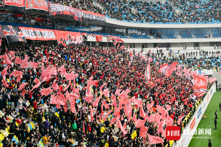 2023年1月19日,冬日的成都凤凰山体育场披上了一层薄霜。近一个月前,成足首次在这里亮相,对阵中超领头羊武汉三镇,迎来了31518名球迷助威,创造了疫情三年以来中超职业联赛的单场观赛人数记录,成都再次重现金牌球市的辉煌。比赛现场,各大球迷组织整齐的方阵,统一的口号,挥舞的旗帜让许多观众倍感亲切,他们热情的助威也带动了全场球迷的热情。在末轮三场比赛后,各球迷组织也迎来了一波入会高潮,许多球迷申请加入球迷组织,还有很多球迷通过朋友打听如何加入球迷协会。封面新闻记者了解到,四川目前主要有两家大的球迷协会,一个是四川省球迷协会,一个是成都红色刀锋球迷会。除此之外,还有郫县球迷协会等一些规模较小的协会。