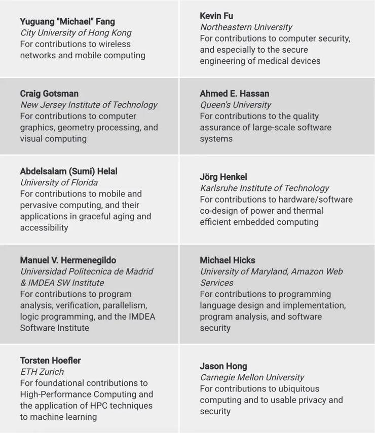 截止目前为止,已有 1000 多位 ACM Fellow 诞生。本次选出的 57 名 ACM Fellow ,在网络安全、人机交互、移动计算和推荐系统等诸多领域做出了广泛的基础性贡献。