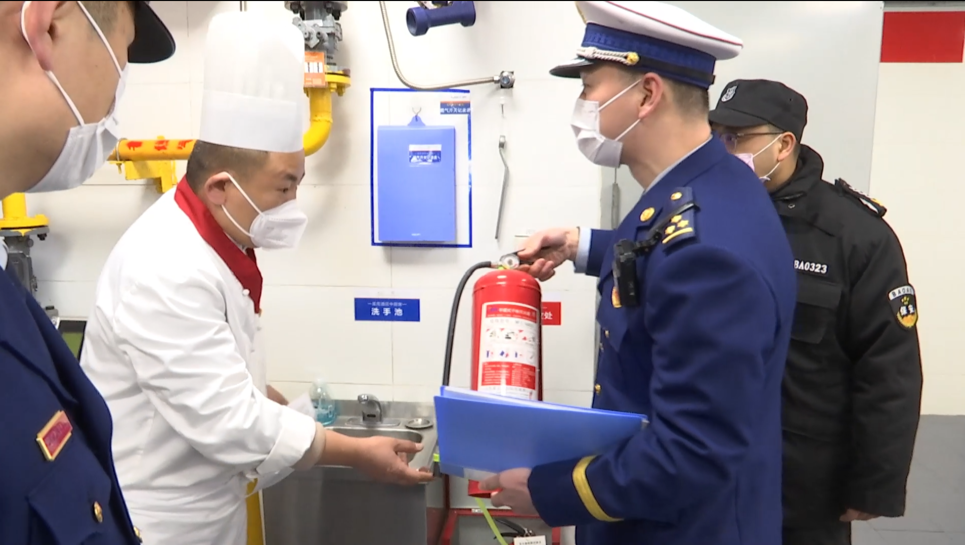 随后,消防监督员来到该酒店的厨房,对厨房内燃气使用是否符合规范,消防器材是否完好有效进行了检查,并对现场对工作人员会否操作灭火器进行了提问,叮嘱工作人员要重视消防知识学习。