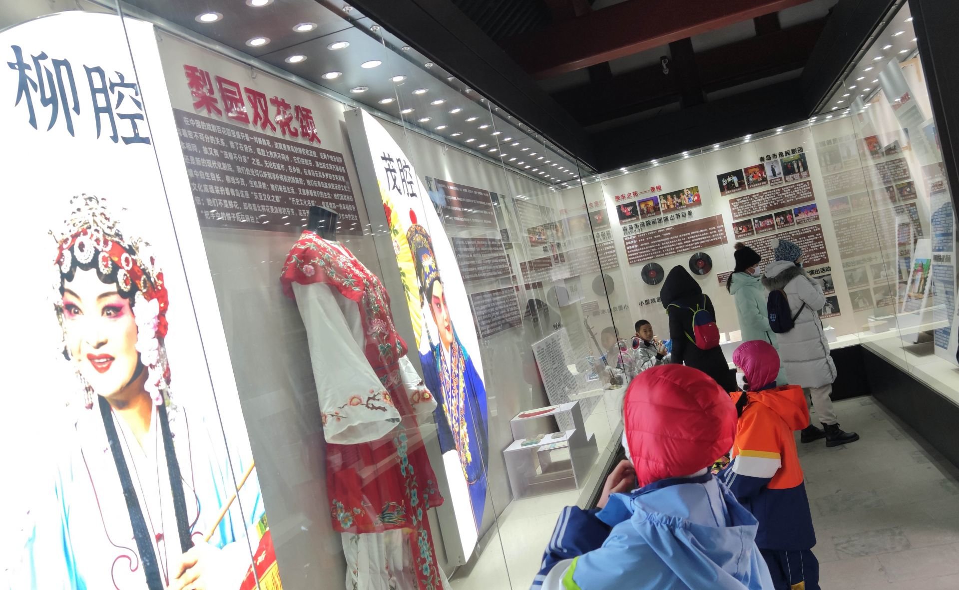 游客在观看《梨园双花颂—青岛地方戏曲文化陈列展》。