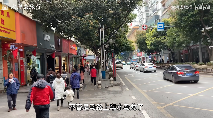 对了,视频拍摄日期是1月份冬天,看大伙儿的穿着就能感受到温度有多舒服了,午后的路上甚至还有人穿着短袖...