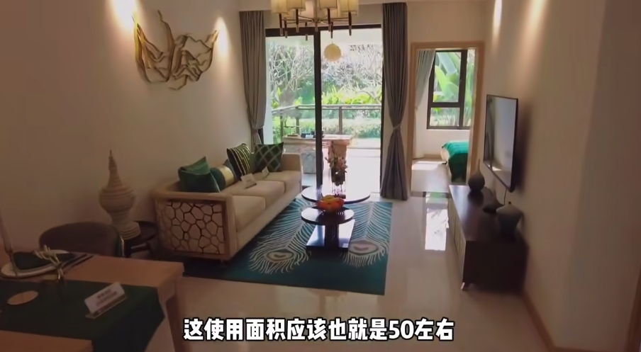 西双版纳的房子面积总体来说较小,比如up主@旅游好市民实地考察的上河居楼盘,45-97㎡为主,精装交付,面向的就是想拎包入住过冬养老的外地房客。