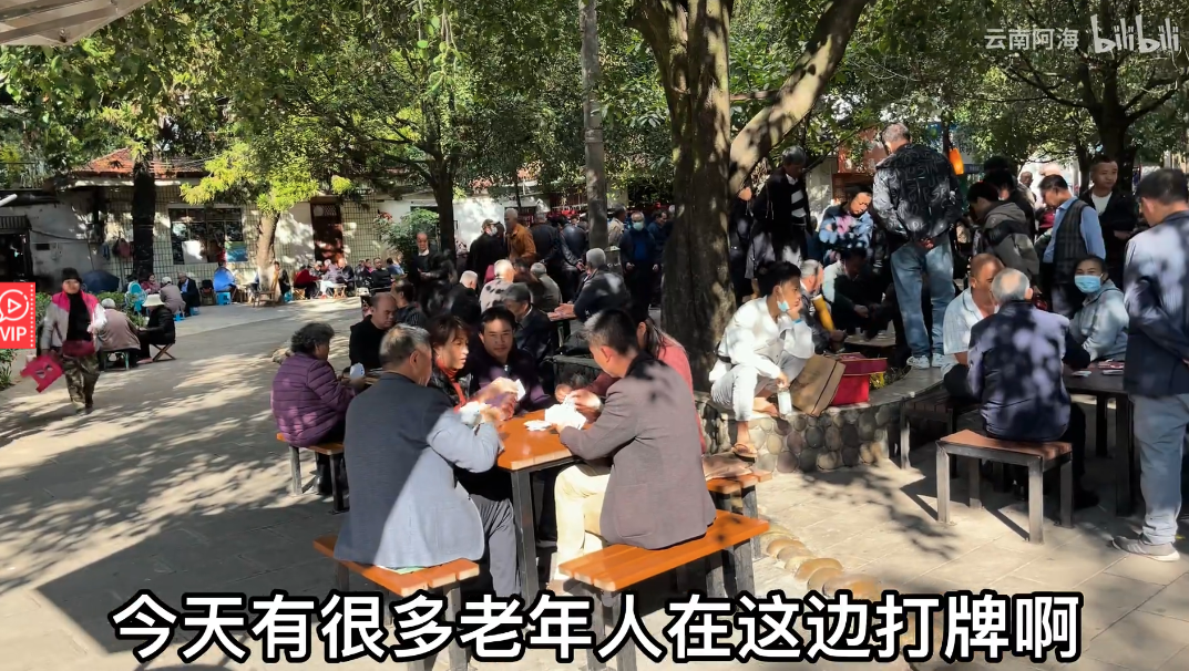 B站up主@云南阿海曾发过一期替网友找房的视频,在普洱市中心红旗广场附近,这里聚集着不少晒着太阳,悠闲打牌的老年人。