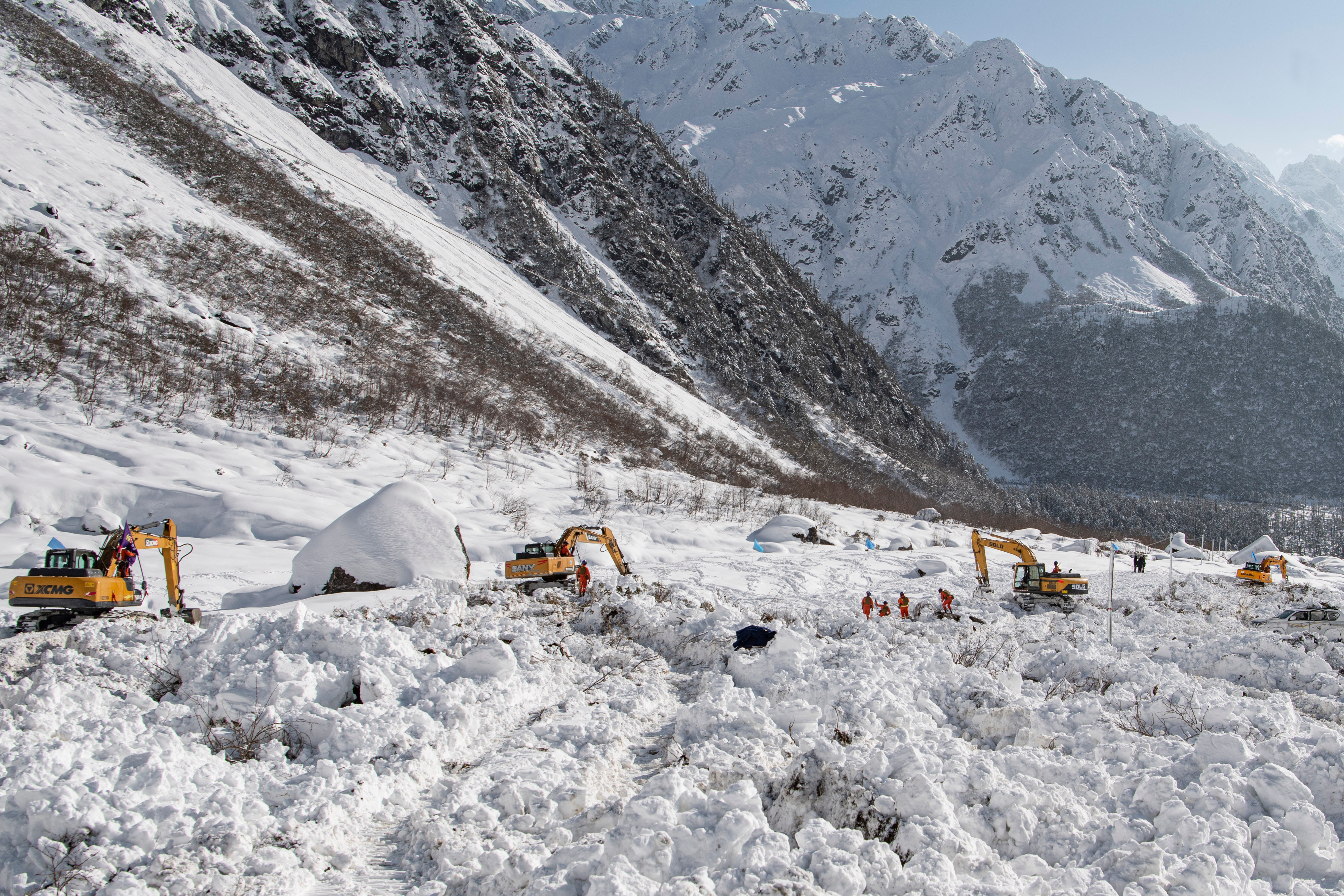 1月20日,救援人员在雪崩现场开展工作。新华社记者 孙非 摄