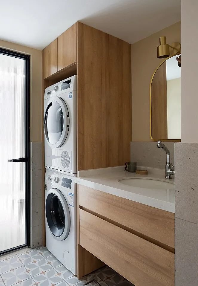 重新整合生活阳台与卫生间之间的关系后,原始的收纳问题及干湿分离都得到解决。