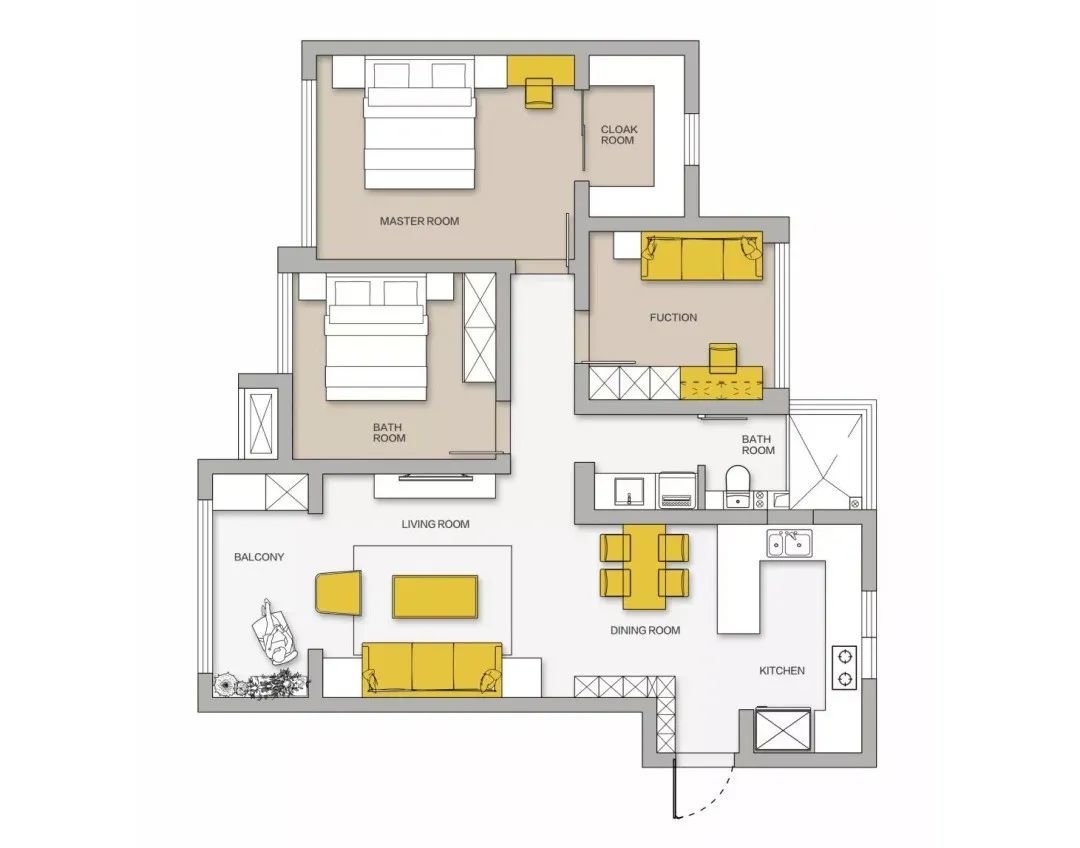 多功能房采用分色墙将质感沉淀,少许悦动的黄演绎出梦幻艺术的空间表情。