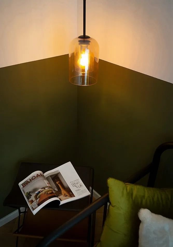 角落一盏玻璃吊灯,杂志随意的在边几上摊开,将优雅小资的氛围渲染到极致。