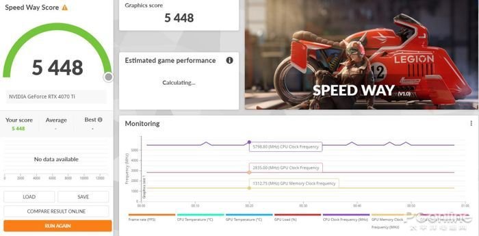 Speed Way测试中,映众 RTX4070Ti 冰龙超级版显卡的测试成绩为5448。