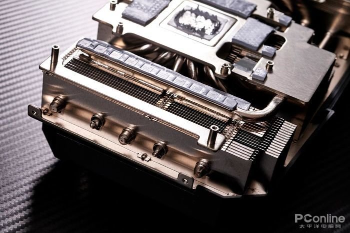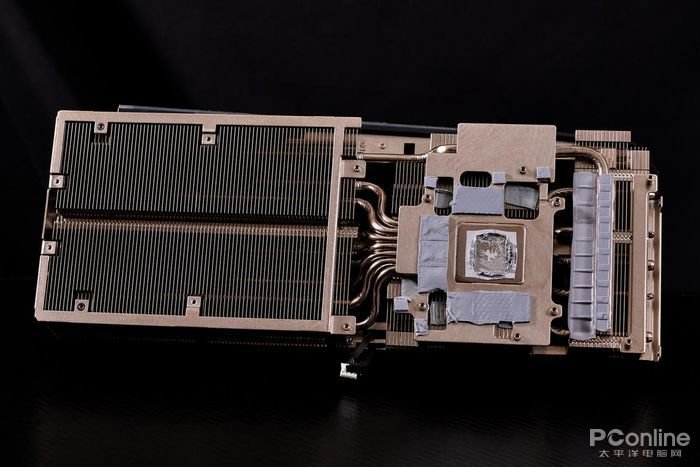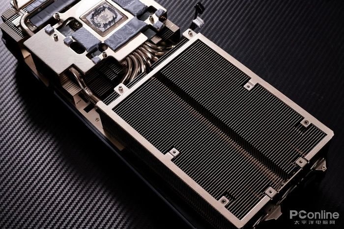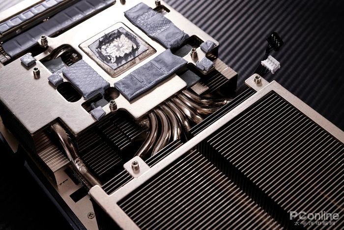 其中7条热管覆盖GPU核心区域,通过与GPU核心直触式的纯铜底座和前端、中端及尾端三组散热鳍片实现连通,从而拥有大区域的散热面积来应对GPU核心运行时所产生的热量。