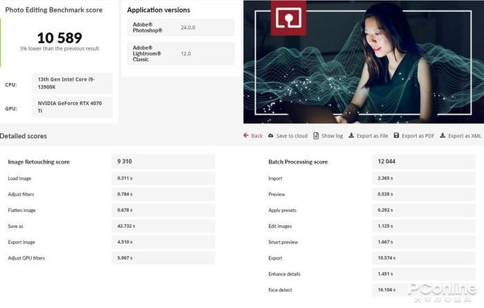 图片处理测试中,映众 RTX4070Ti 冰龙超级版显卡的测试成绩总分为10589,其中图片润饰处理成绩为9310;图片批处理测试成绩为12044。