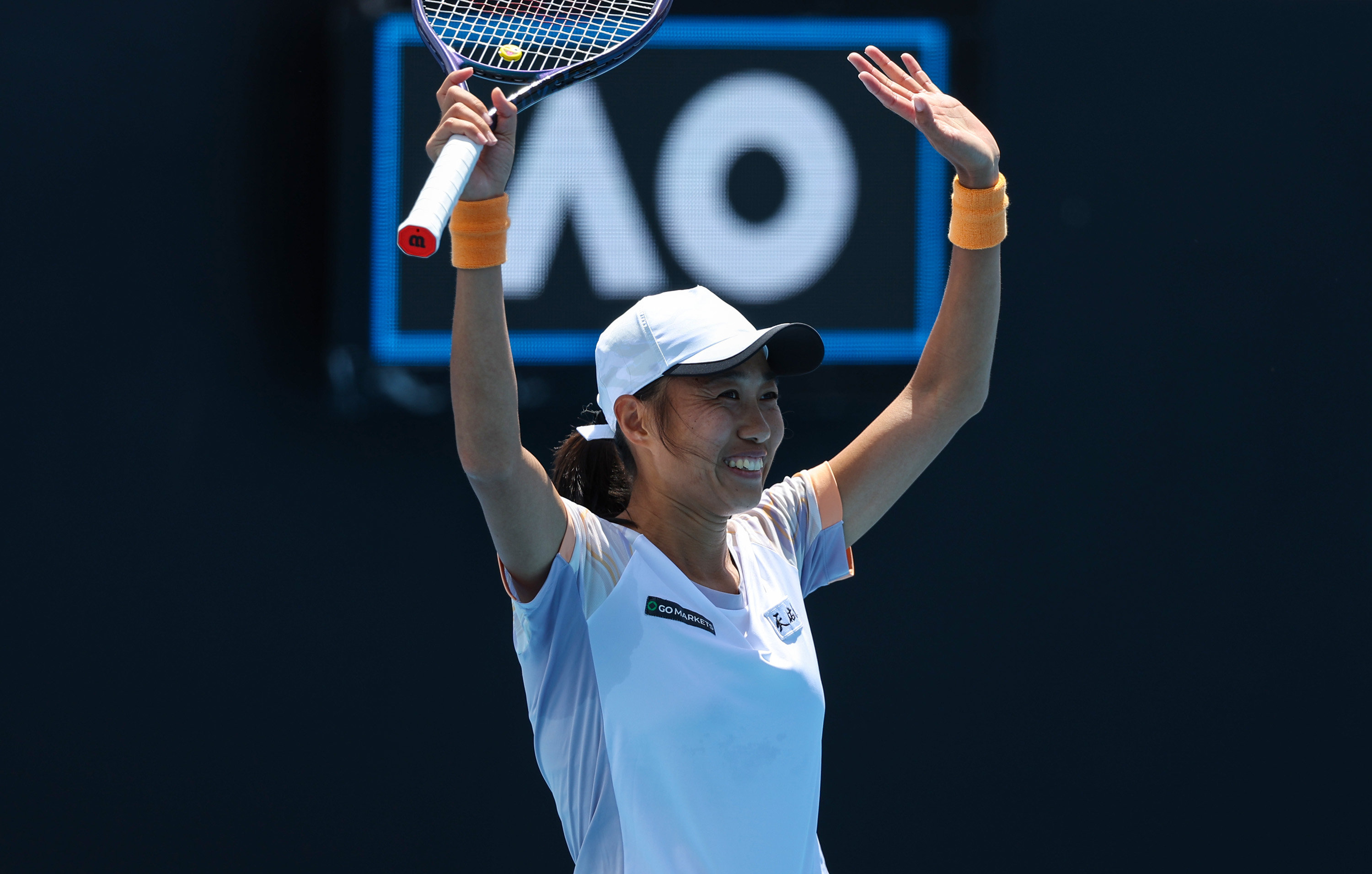1月21日,张帅庆祝比赛获胜。新华社记者白雪飞摄