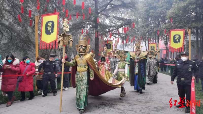 “祈福三星堆,福佑千万家。”今天是2023年正月初一,时隔三年,“三星堆新年大典”祭祀祈福展演活动重新启动,为群众送来祝福。1月22日上午9点30分,在广汉三星堆博物馆正大门,身着古蜀国服装的祭祀人员已经被众多游客包围起来。一场盛大的祭祀仪式即将开始。