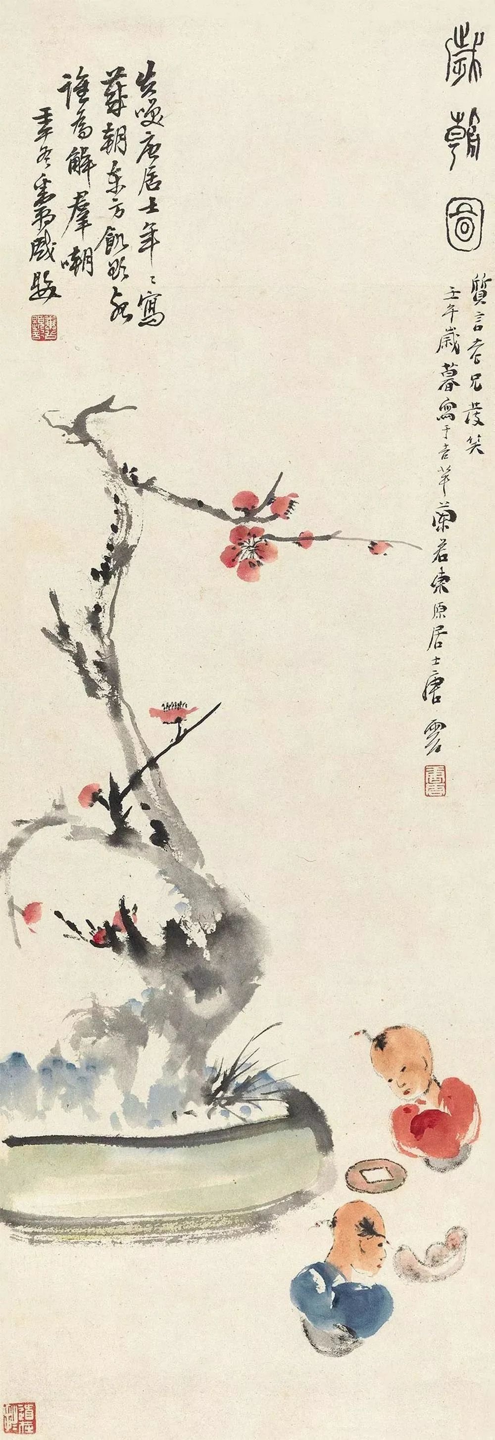 唐云 1944年作 《岁朝图》 立轴 设色纸本