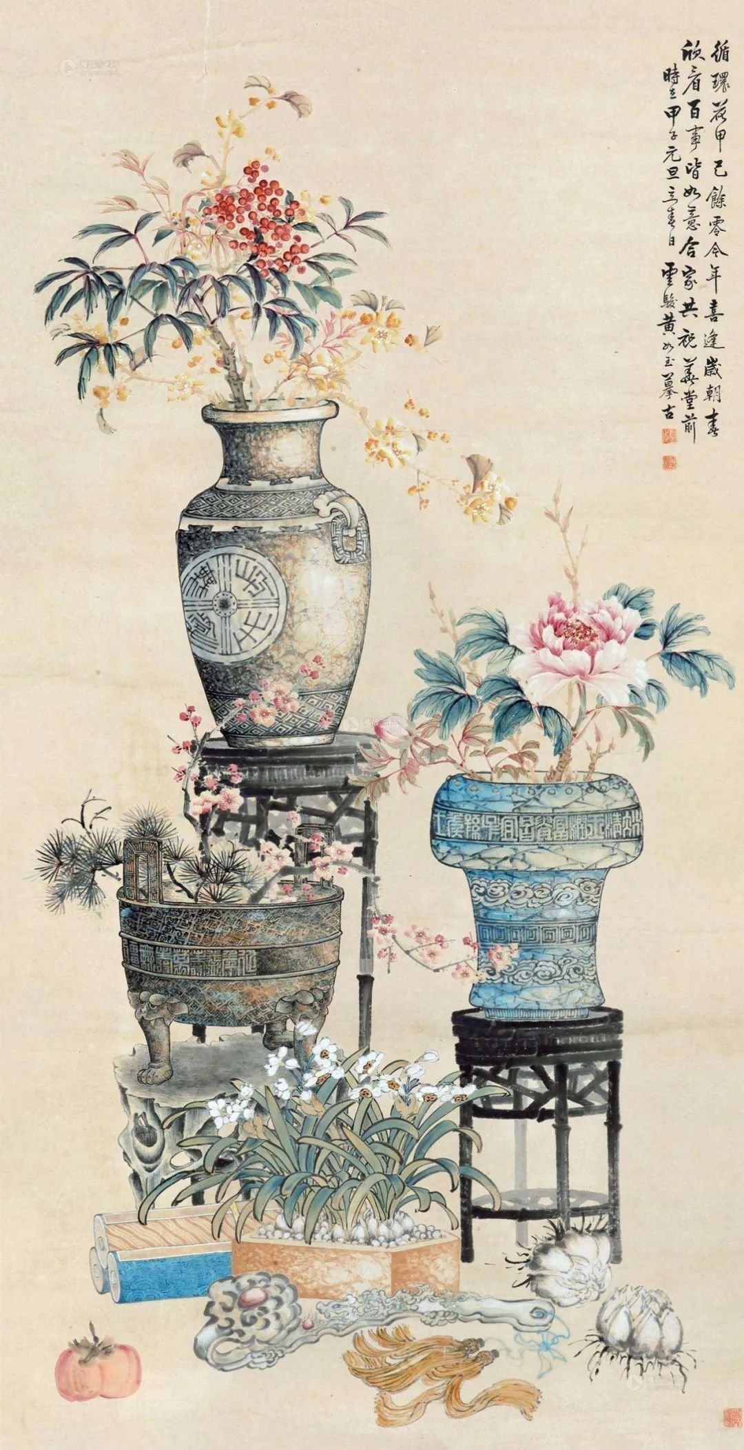 管念慈 甲午(1894年)作 岁朝图 立轴 绢本