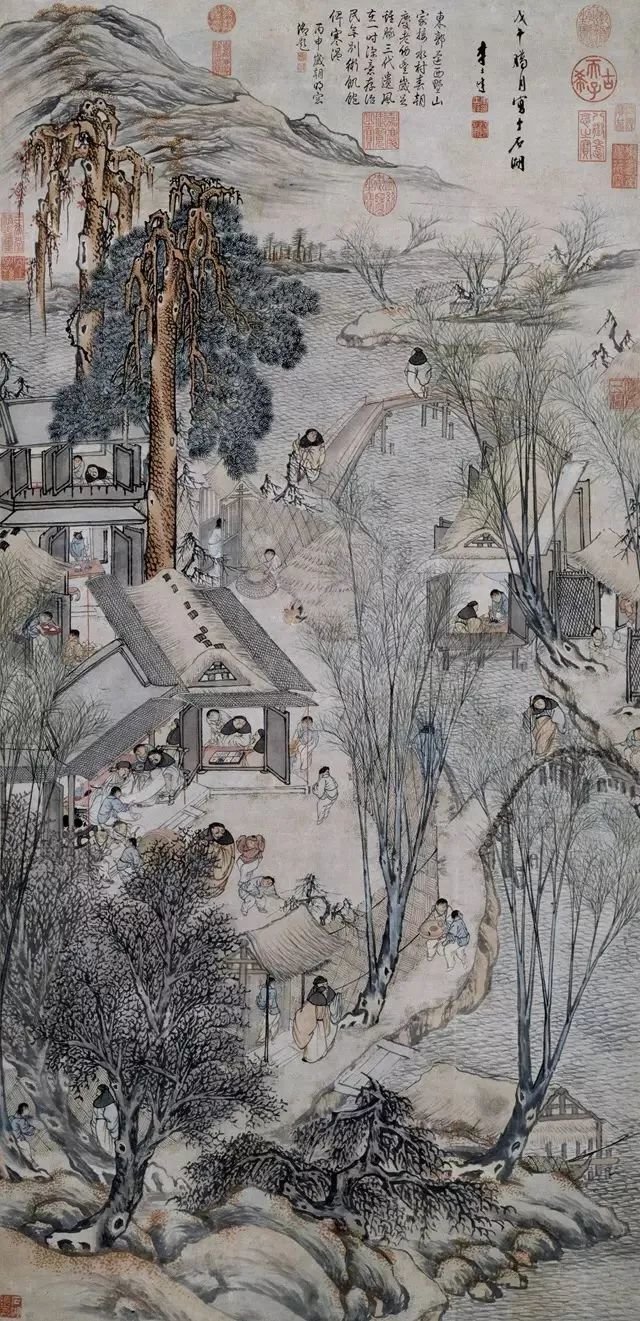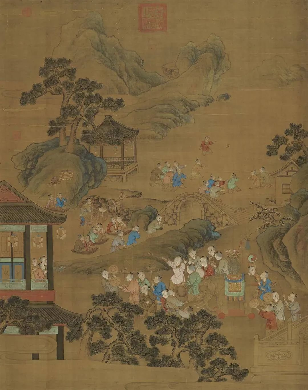 到了明清时期,岁朝图经过发展真正意义上定型和流行在明清的宫廷——故宫(紫禁城)之中,很多时候皇帝本人甚至会亲手画上几笔。