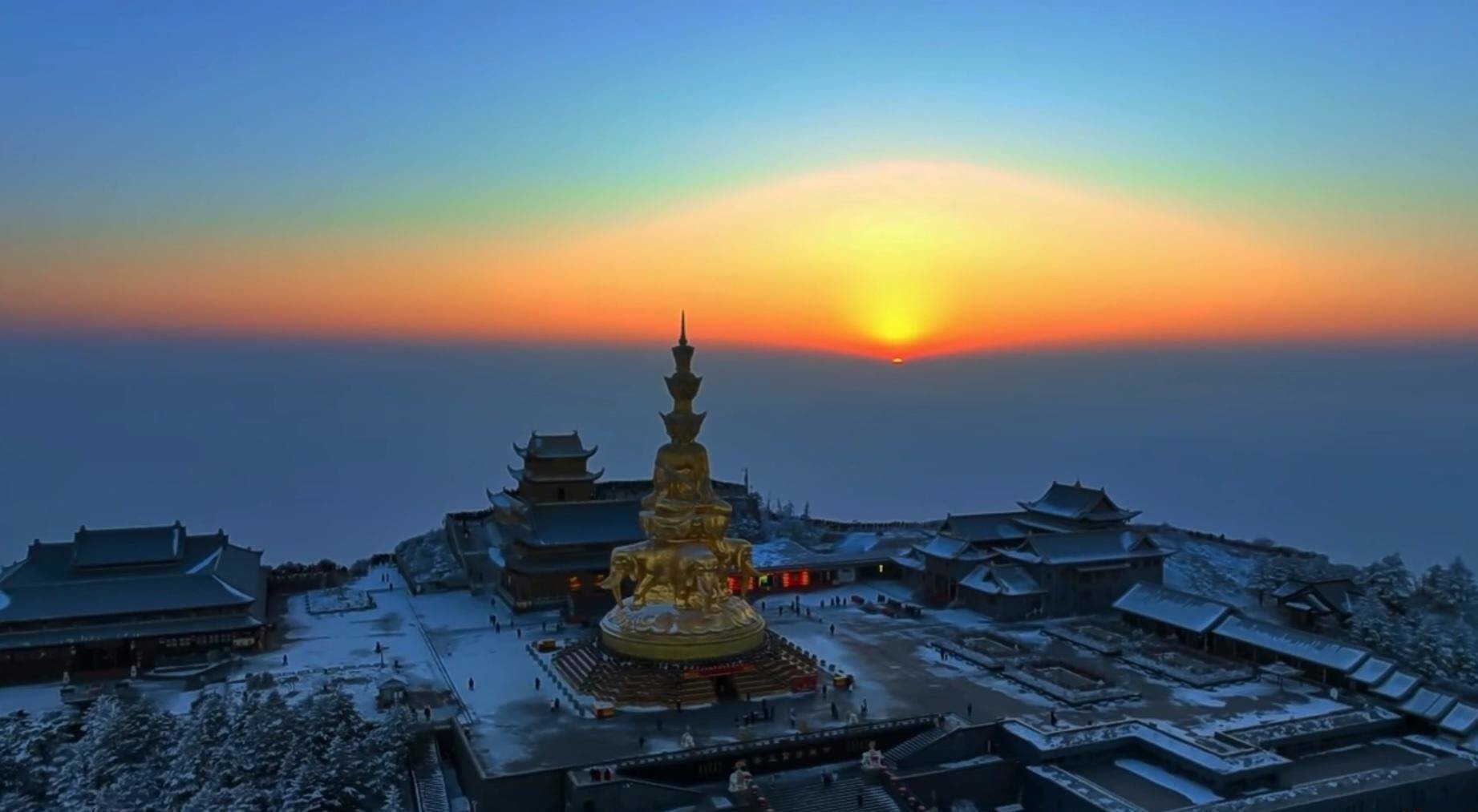1月22日,农历正月初一,清晨8时,峨眉山金顶用一场日出迎接兔年新春第一天。来自五湖四海的游客,共同见证了峨眉山云海日出这一盛景。