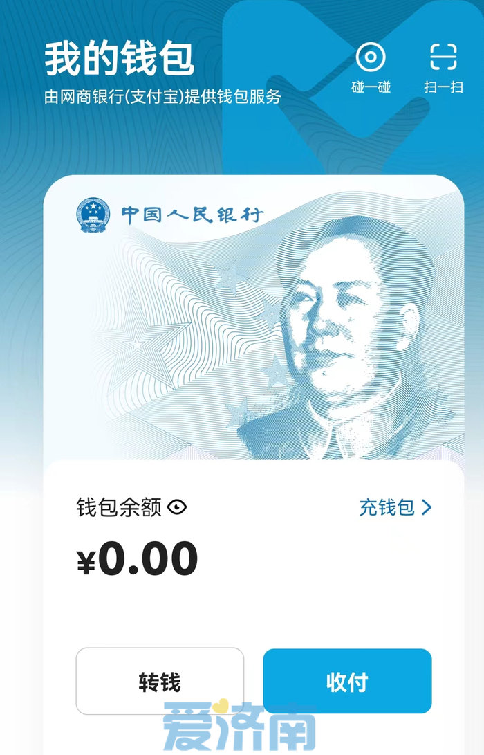 据了解,目前济南手机用户可通过下载“数字人民币”App注册并开通数字钱包,当前可以选择的运营机构包括:工商银行、农业银行、中国银行、建设银行、交通银行、邮储银行、招商银行、兴业银行,以及网商银行(支付宝)和微众银行(微信支付)。用户可按照要求开通数字钱包,随后通过添加银行卡等方式进行实名认证,将匿名钱包升级为实名钱包。