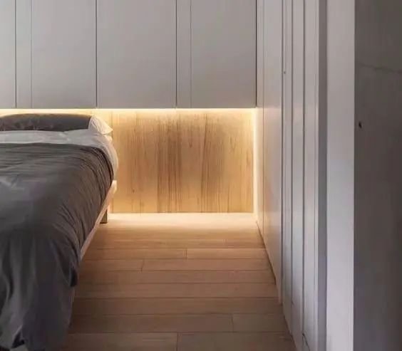 还可以在床头墙的必要的区域安装一款感应灯,它既能在你半夜起身时,为你提供照明路线,也能充当睡前灯,入睡即灭,行走即亮的感应方式也非常有助于睡眠质量的提升。