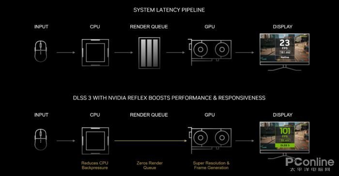 NVIDIA Reflex也是DLSS3其中的一环,它可以使GPU和CPU同步,确保最佳响应速度和低系统延迟。