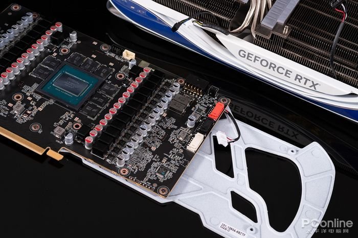 同时背板和散热器采用多点分布式安装设计,且增加了合金加固骨骼结构部件,增加显卡结构强度的同时,保护显卡PCB。