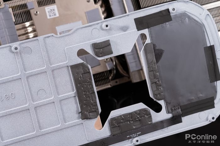 除此之外,金属背板的显存和GPU核心位置依然贴了导热垫,可以从背板处导热,妥妥的旗舰级配置散热。