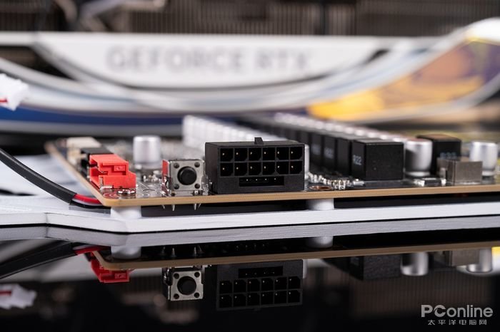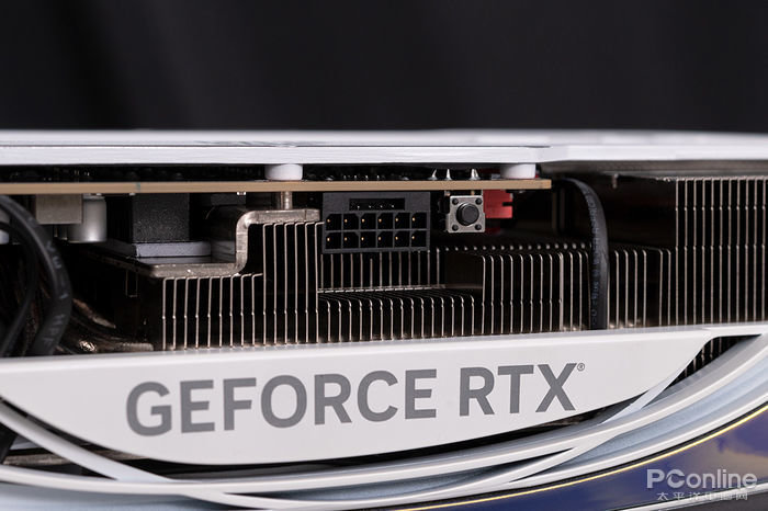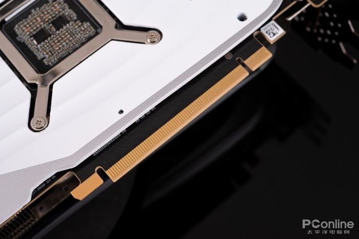 电源接口是PCIe 5.0规范的16Pin供电接口,内部的金属端子进行了镀金设计,能够减缓氧化,降低发热量。