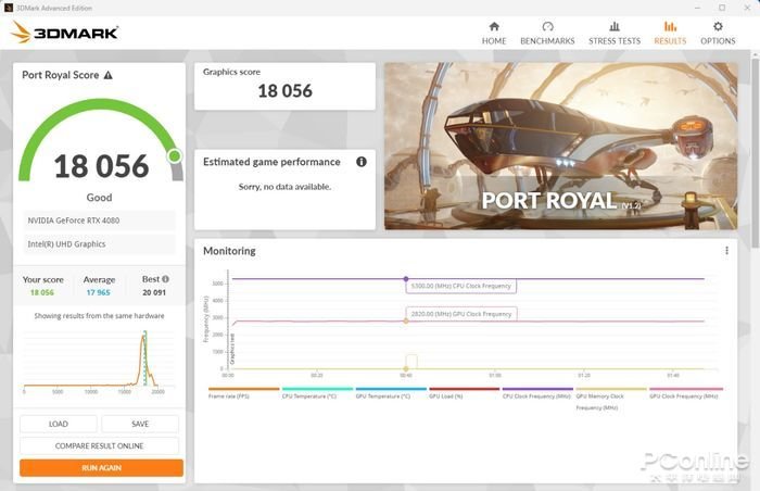 更让笔者惊喜的还是光追部分的测试,光追是老黄在RTX 20系显卡上引入的新概念,能够提升游戏的质感,不过对显卡的性能要求颇高。上代卡皇RTX 3090 Ti在Port Royal光追测试项目中得分为1W4左右,而带索泰RTX 4080 AMP EXTREME AIRO月白凭借新架构的优势,在该项目中已经突破1W8分大关,性能领先30%。