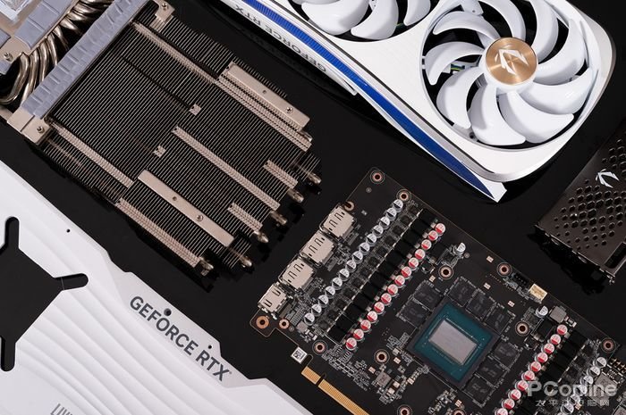 外在的颜值已经足够惊艳,内在的配置到底如何就要拆开来看看才知道了,索泰RTX 4080 AMP EXTREME AIRO月白的拆解还是比较简单的,卸下背板螺丝即可分离PCB了。