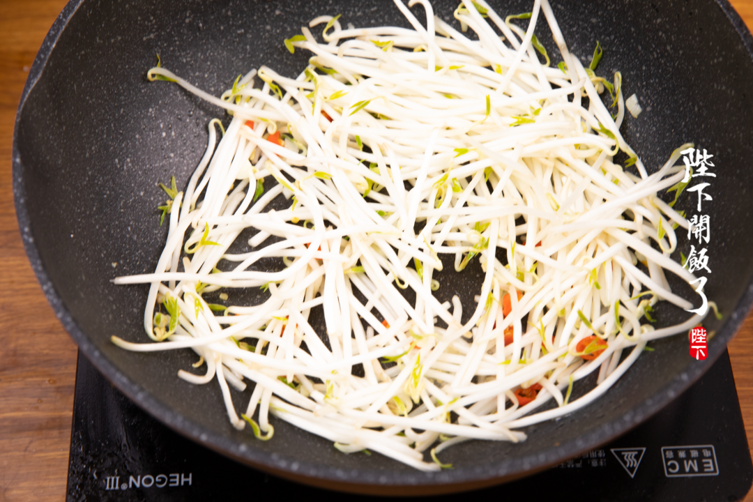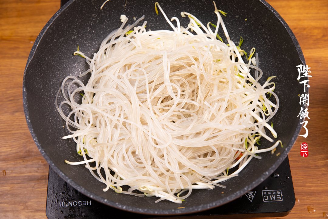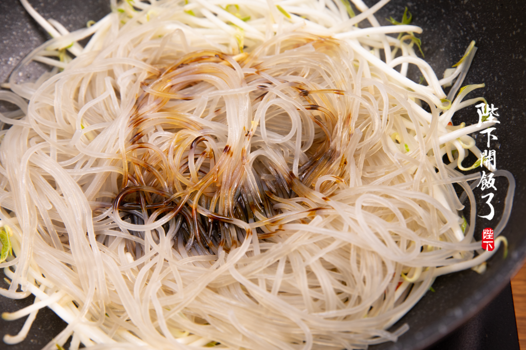 再放入豆芽和红薯粉,加适量老抽和生抽调味上色。