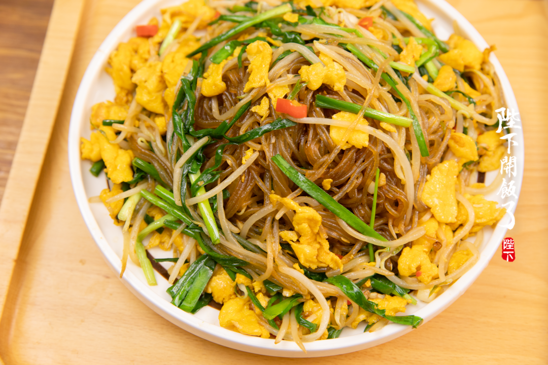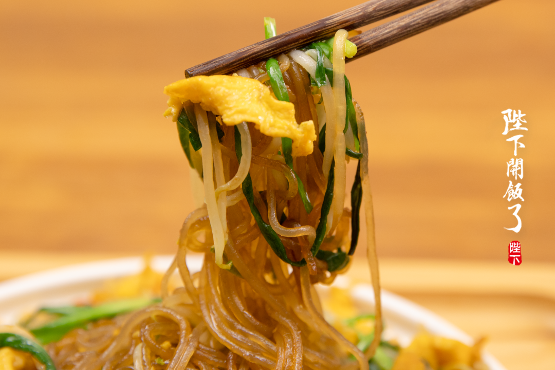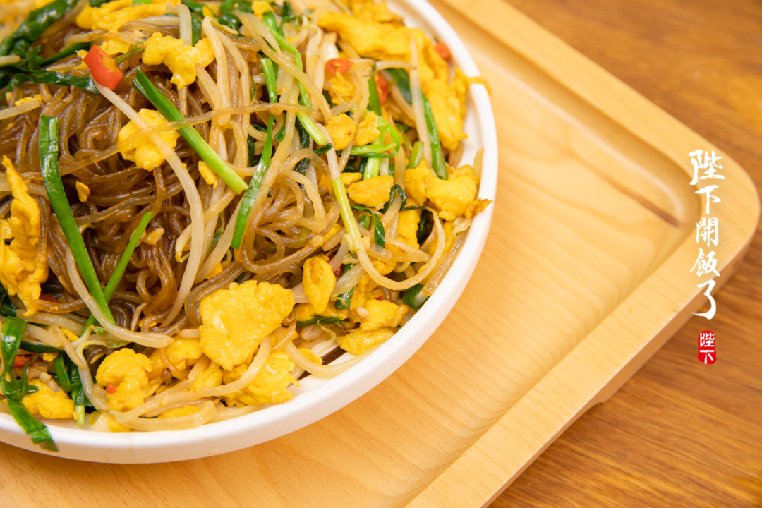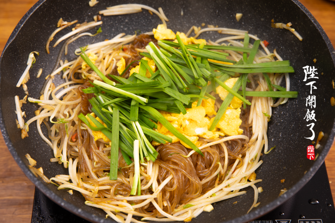 做法呢也相当家常——把肉丝,粉丝,豆芽,韭黄以及菠菜混合在一起炒,虽然食材简单,却非常适合全家老小一起吃。清爽脆嫩的蔬菜搭配在一起,还有弹韧的红薯粉做底料,这一锅时蔬、鸡蛋、主食都齐了,简直活脱脱就是一餐正餐!!