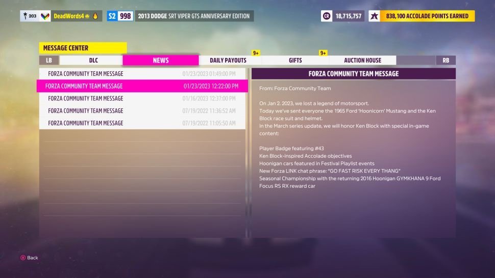 此外,《极限竞速:地平线 5》Festival Playlist 系列 18 将为 Ken Block 提供专为玩家准备的游戏内内容和活动。