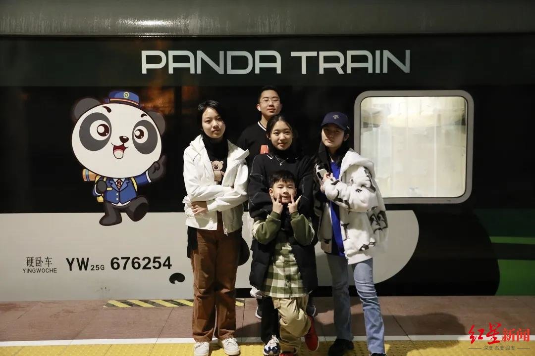 ↑乘坐“熊猫专列”的旅客