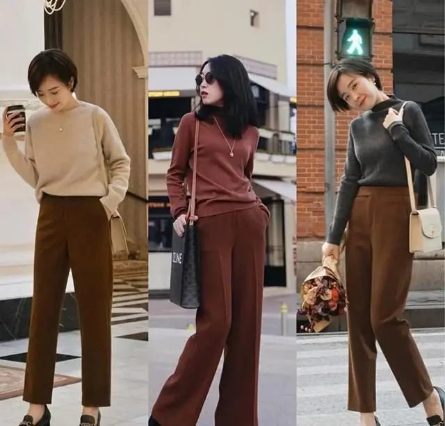 休闲裤也是今年时尚界的一匹黑马,它的高级和醇厚,都能很好的让造型充满一种浓郁的古典韵味!搭配大毛衣华丽而温暖,是冬天阔腿裤的一个绝佳之选!