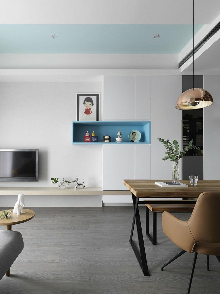 此种配色形式可以呈现出干净、不浮躁,不繁杂的空间视觉效果,令人在空间中的情绪舒适、安定。