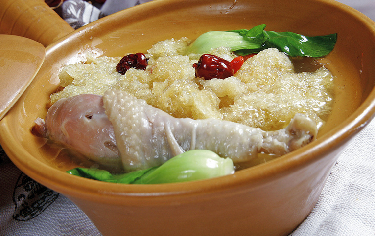 外形很像石首长江边的笔架山,鳔内有红色的笔架山图案,笔架鱼肚因而得名。每年春节,这道菜都是石首人年夜饭的头牌。