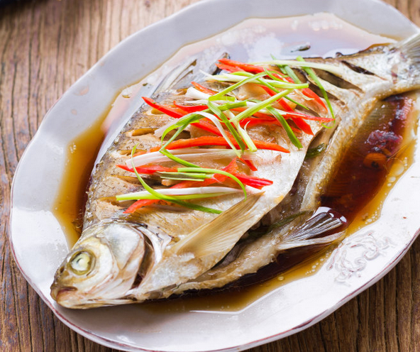 地道的武昌鱼产于鄂州梁子湖,头小体高,面扁背厚,脂肪丰富,肉味鲜美,汤汁清香,营养丰富,堪称淡水鱼中的珍味佳肴。清蒸武昌鱼既是许多餐厅酒楼的镇店名菜,也是许多老百姓家里的家常菜。其做法简单易学:将鱼收拾干净,两面打上花刀,根据个人喜好加葱结、姜片、精盐、绍酒、清汤或其他配料,上屉蒸约 10 分钟取出,拣出葱姜即可食用。