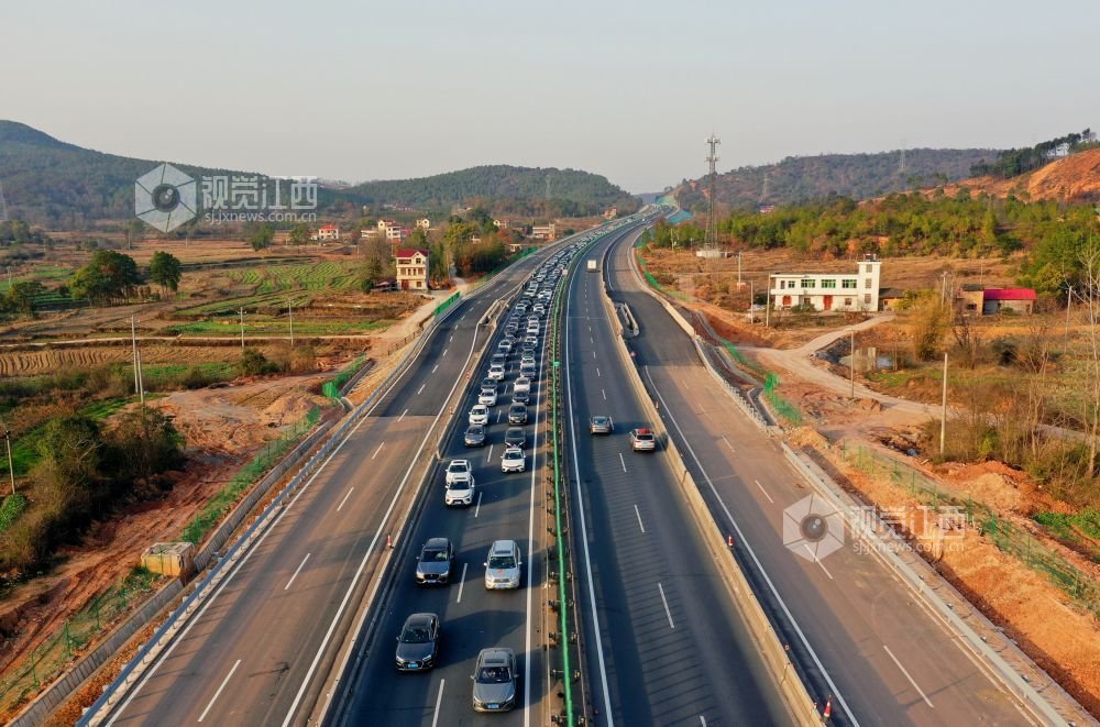 1月27日,大广(大庆—广州)高速公路江西省吉安市泰和县路段,返程向南的车流排成长龙,与向北稀疏的车辆形成鲜明对比,蔚为壮观。1月27日,春节假期最后一天,江西多地高速公路多个路段车流量大,多处收费站临时封闭。江西高速公路部门发布紧急提醒,返程时请注意安全。视觉江西 邓和平 摄