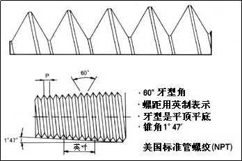 NPT 是 National (American) Pipe Thread 的缩写,属于美国标准的 60 度锥管螺纹,用于北美地区.国家标准可查阅 GB/T12716。