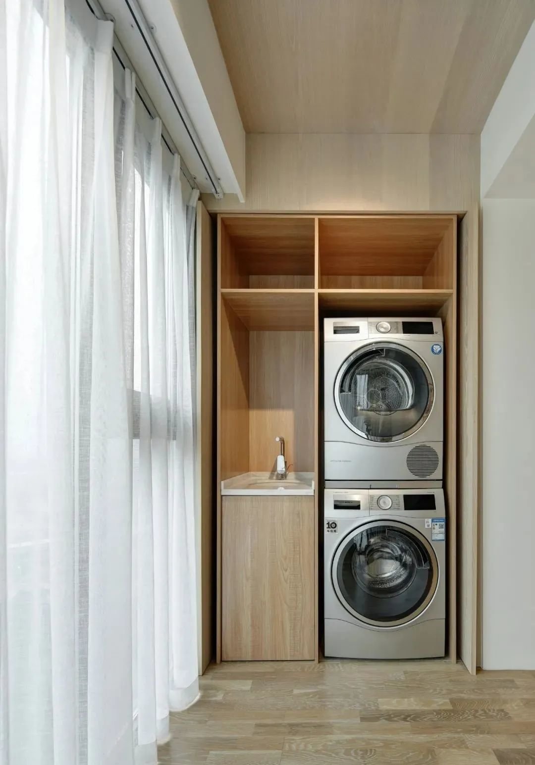 阳台改为家政间有其独有的优势,光照和通风条件较好,不用担心滋生细菌,所以阳台是适合打造家政区的空间之一。