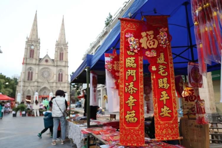 和人潮涌动的服装市场比起来,一德路也不甘示弱。红灯笼、红对联、红地毯……中国潮色将每个踏上这条街的人迅速拽入过年的氛围里。