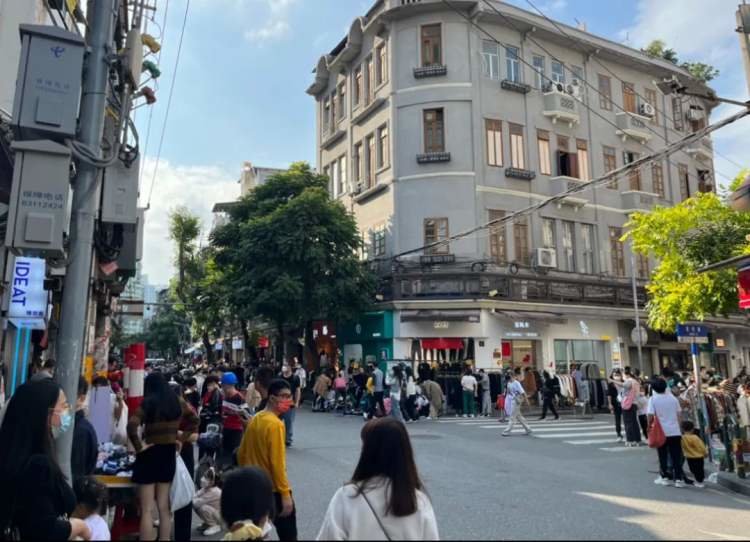 除了像李小姐这种来批发市场给家人备新衣的消费者,这里还有很多被社交平台上的种草帖吸引而来的年轻人。除了200元9件的诱惑,一些年轻人还想感受一下当年在外打工的父辈给自己挑选新衣的心情。