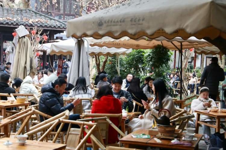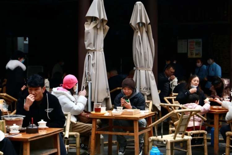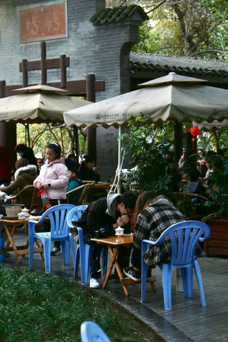 似乎可以如此断言,茶馆的生意几乎没差过,只是到了春节,年轻人们有了更充裕的时间享受阳光、社交以及恋爱的快乐,那些布置在公园、寺庙的茶椅被他们成群占据。