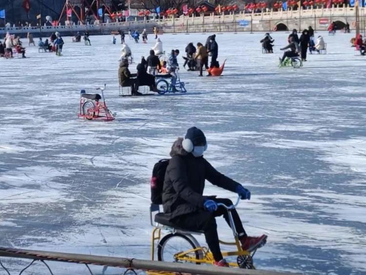 她说:“我同事告诉我以前这边还有冰嬉表演,现在都是大家自己滑。虽然今年因为工作原因不能回南方过年,但是感受到别样的年味儿。”