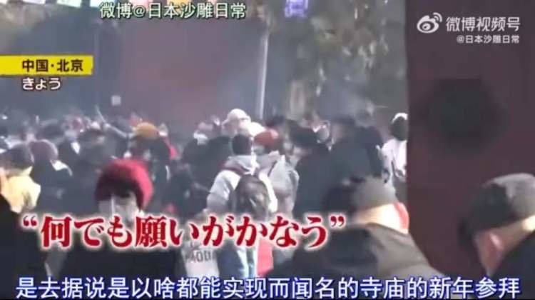 日本电视台对北京市民前往雍和宫烧头香的报道。/@日本沙雕日常