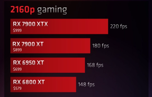 从官方公布的数据来看,新一代的RX 7900 XTX和RX 7900 XT,在2160p下,帧数确实全面领先于RX 6000系列显卡。