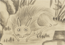 画中兔子圆睁的双眼囧囧地盯着观者,天真中透出几分一言难尽……